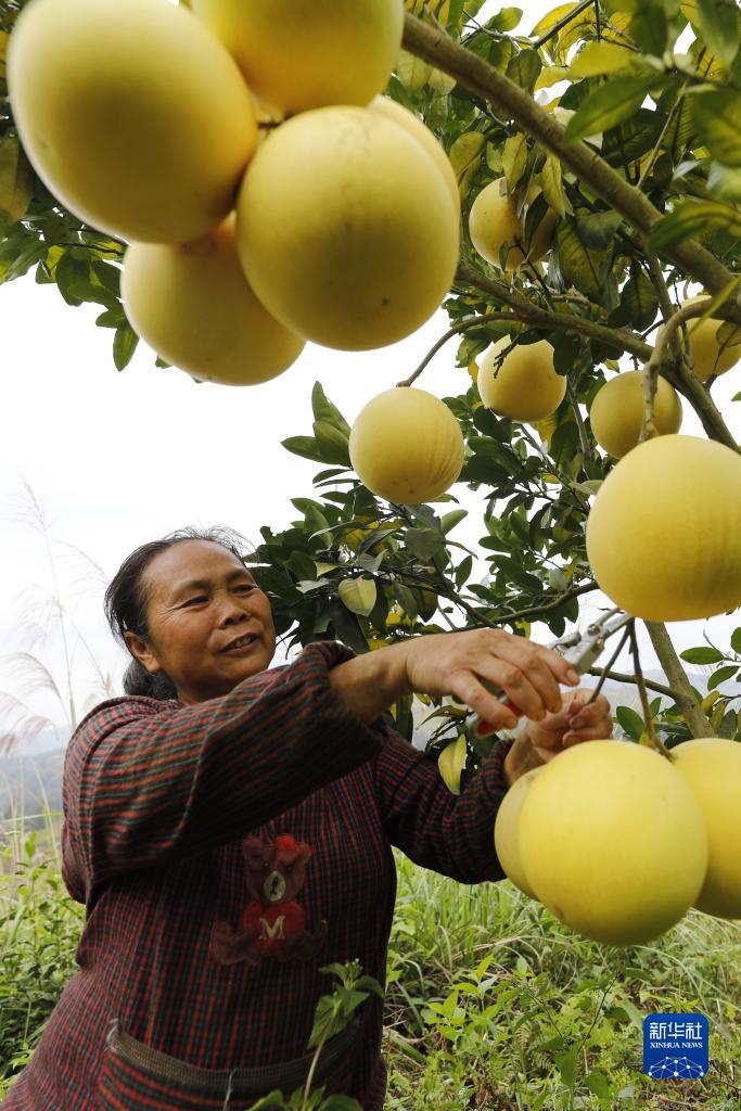 10月24日,村民在貴州省錦屏縣茅坪鎮紅心蜜柚種植基地採摘柚子。