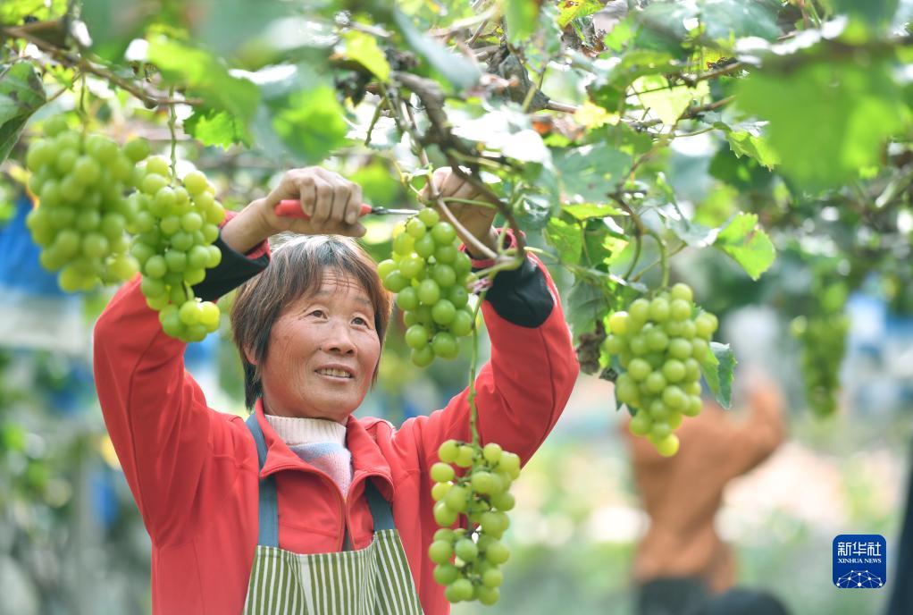 10月19日,果農在河北省石家莊市元氏縣殷村鎮紅旗村採摘葡萄。