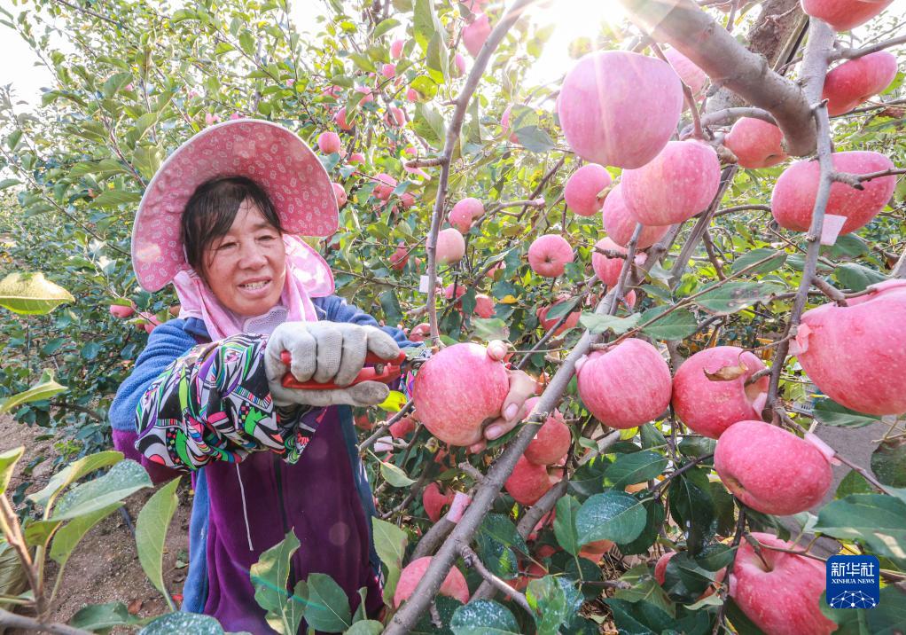 10月24日,果農在山東省榮成市夏莊鎮一果園採摘蘋果。