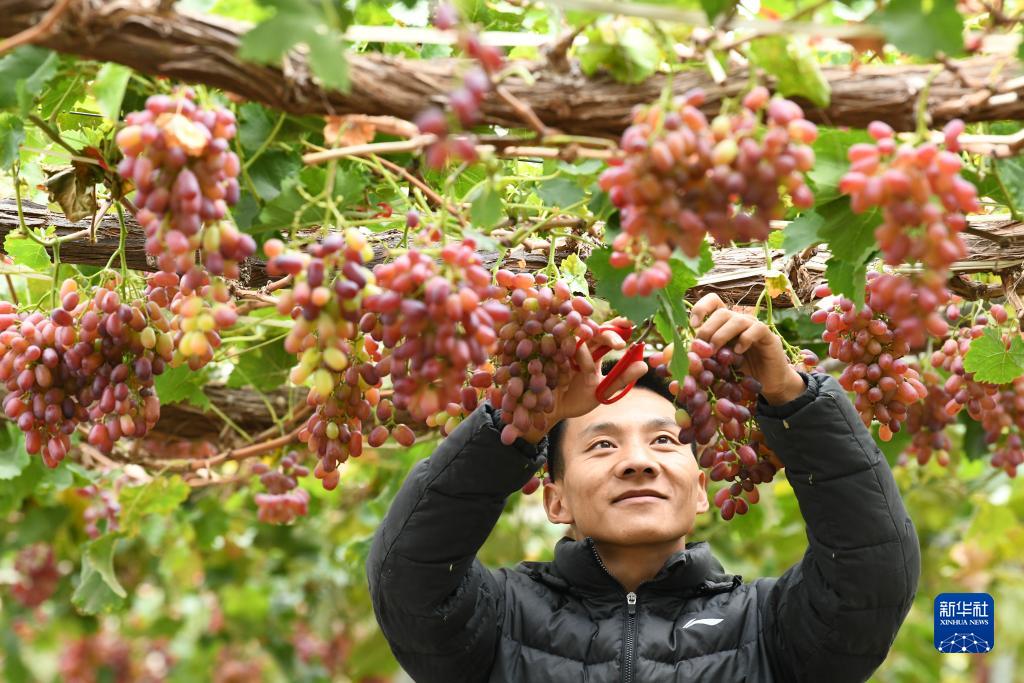 10月24日,果農在雲南省麗江市古城區大研街道文智社區的一家葡萄種植基地採摘葡萄。