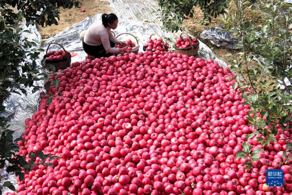 10月24日,在甘肅省平涼市靜寧縣余灣鄉王坪村村民分揀蘋果。