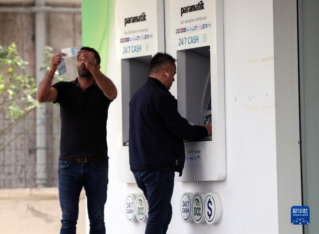10月26日,在土耳首都其安卡拉,人們在一處銀行自動櫃員機前辦理業務。