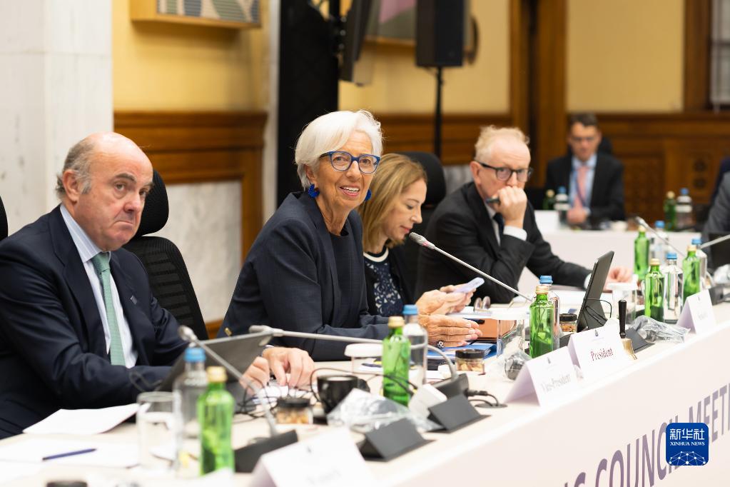 10月26日,歐洲中央銀行行長拉加德(左二)在希臘雅典出席歐洲中央銀行貨幣政策會議。