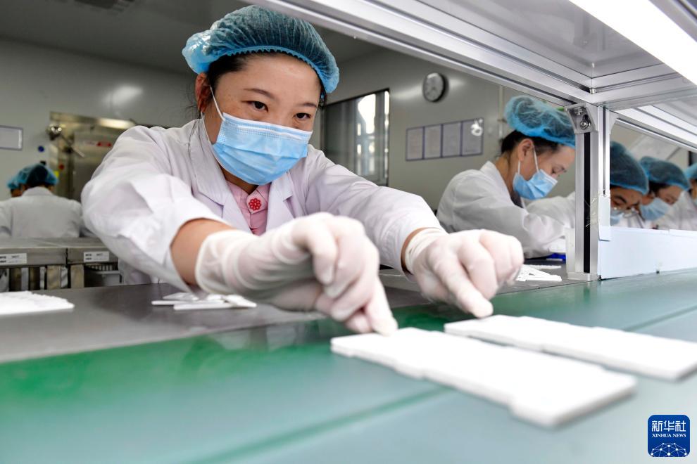 10月26日,在山東美正生物科技有限公司生産車間,工作人員在生産微生物快速檢測盒。