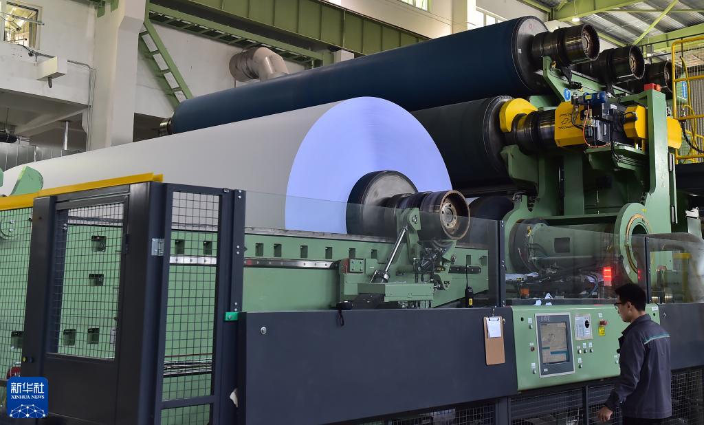 10月25日,工作人員在亞太森博(山東)漿紙有限公司紙生産線上值守。
