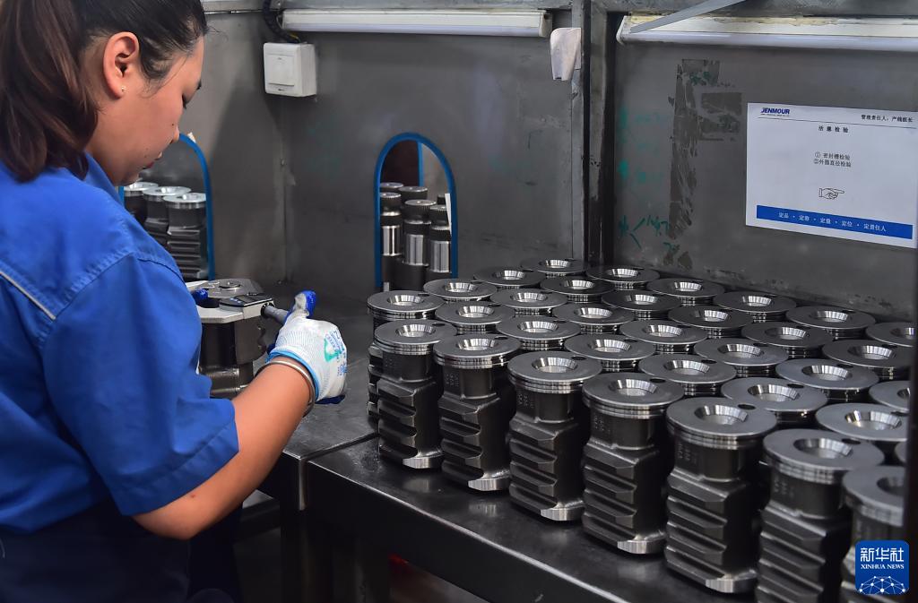 10月25日,在金馬工業集團股份有限公司生産車間,技術工人在檢驗活塞産品。