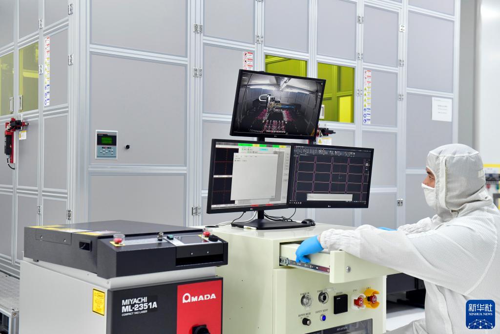 10月26日,在山東奧萊電子科技有限公司生産車間,工作人員在生産OLED第六代金屬掩膜板。