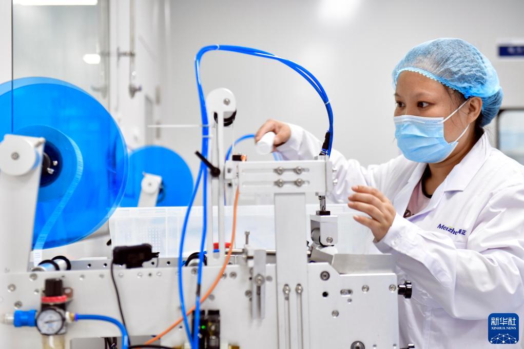 10月26日,在山東美正生物科技有限公司生産車間,工作人員在生産微生物快速檢測盒。