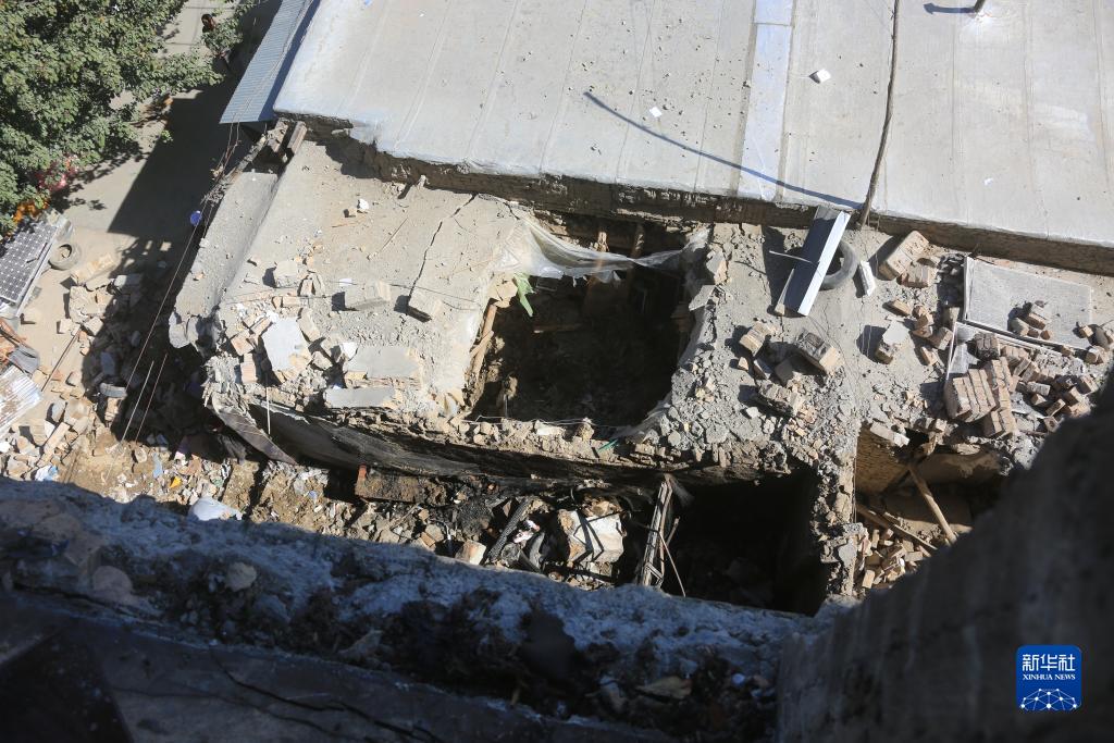這是10月27日在阿富汗首都喀布爾拍攝的爆炸現場受損的建築。