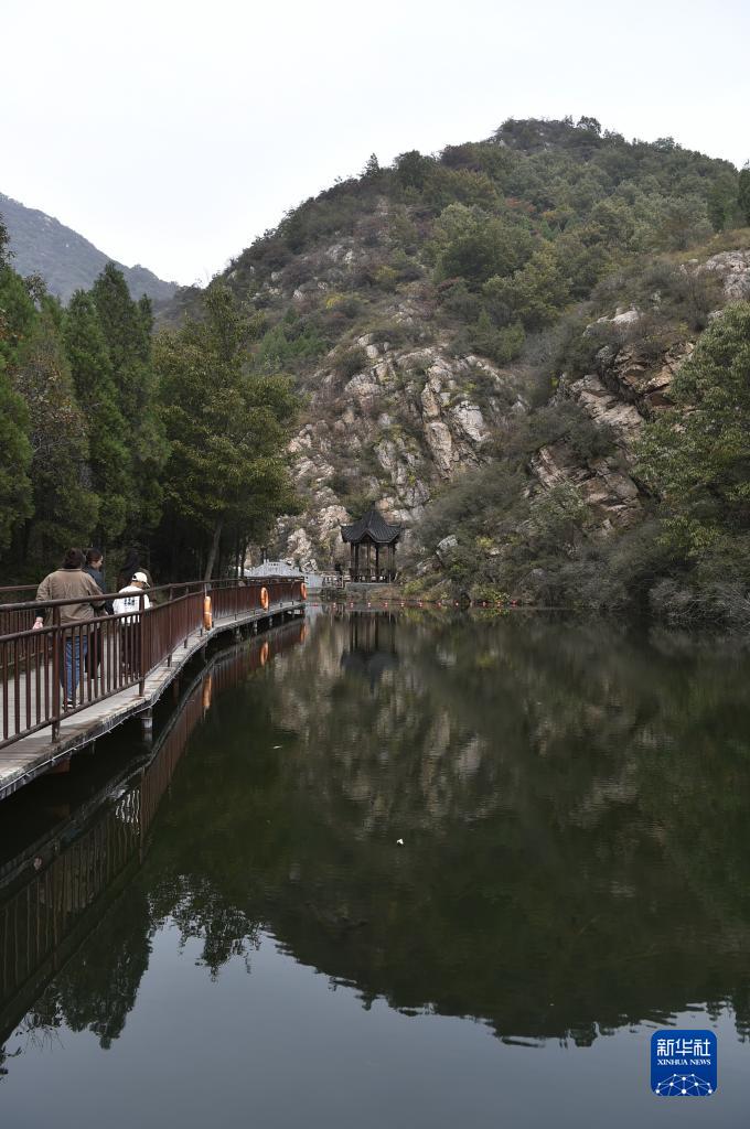 霜降節氣過後,位於河南省禹州市鳩山鎮的大鴻寨國家森林公園層林盡染,景色宜人,吸引游客前來登高觀景、賞秋拍照。