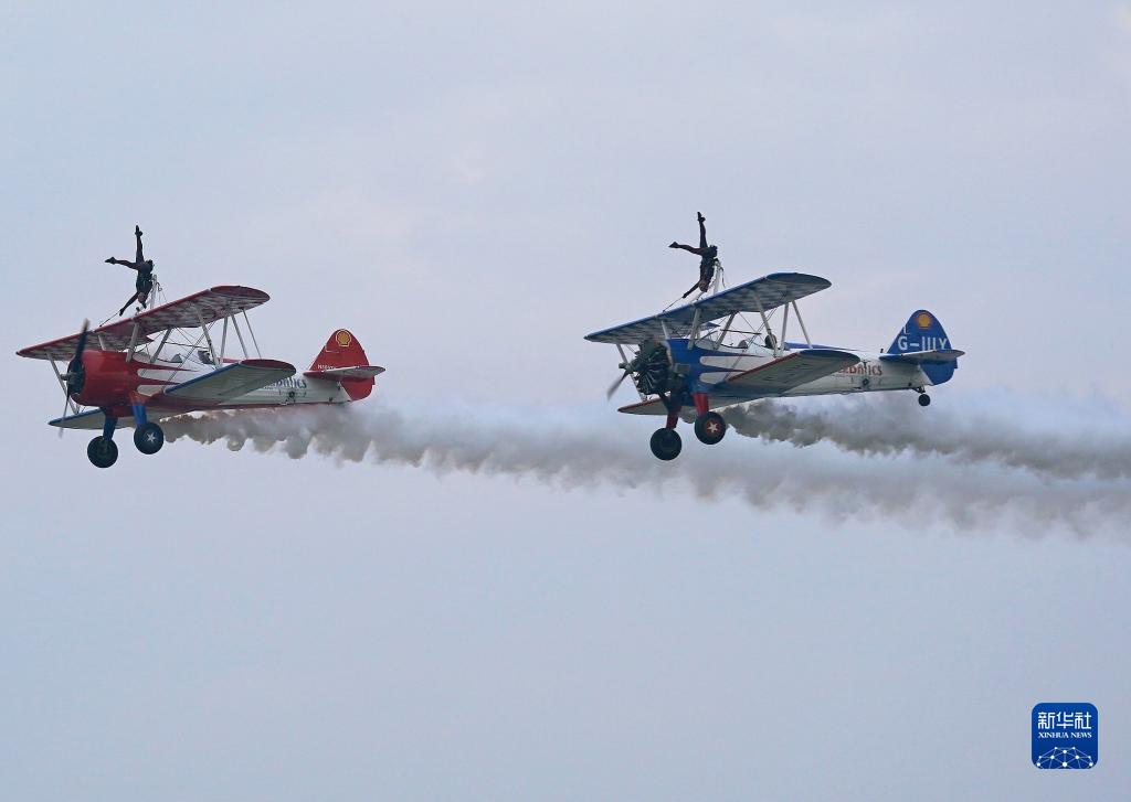 英國禦風機翼行走特技飛行表演隊在進行飛行特技展示(10月27日攝)。