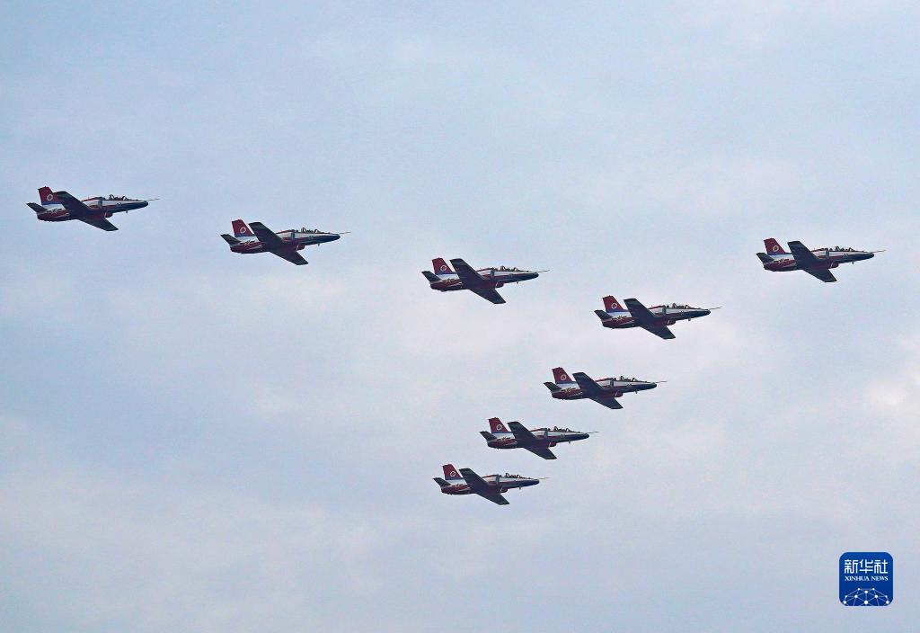 空軍航空大學“紅鷹”飛行表演隊在進行飛行展示(10月27日攝)。