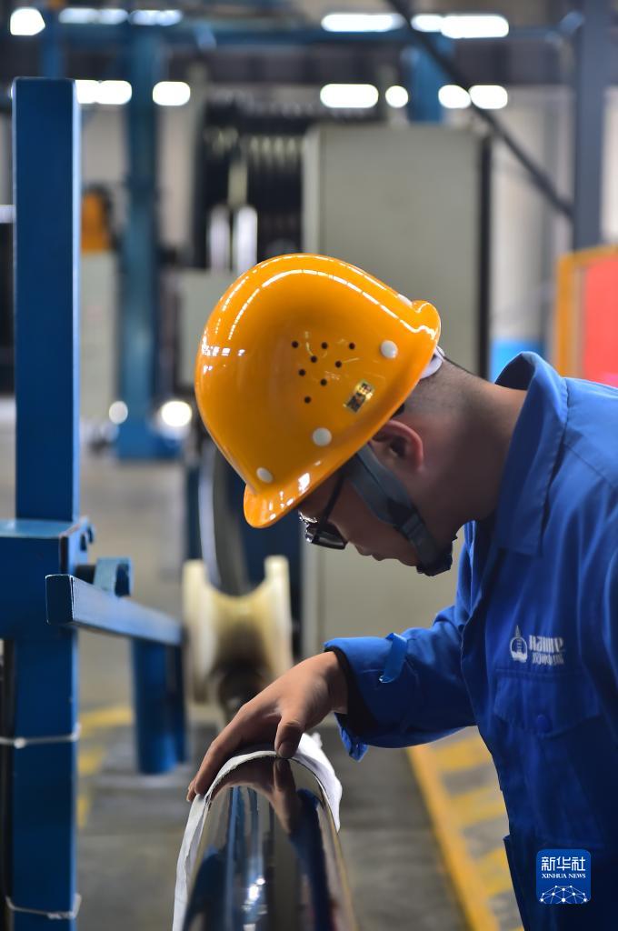 10月27日,在山東省聊城市陽谷縣漢河(陽谷)電纜有限公司生産車間,技術工人在檢驗海底電纜産品。