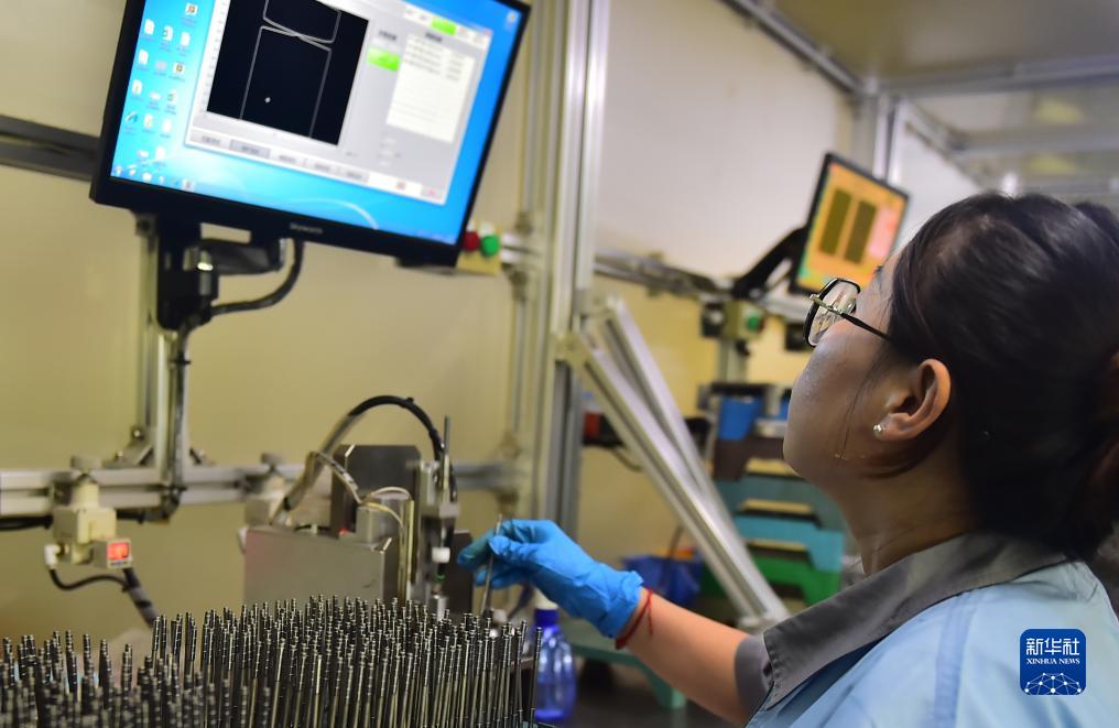 10月26日,在山東省聊城市高新區山東鑫亞格林鮑爾燃油系統有限公司生産車間,技術人員在生産線上檢驗産品。