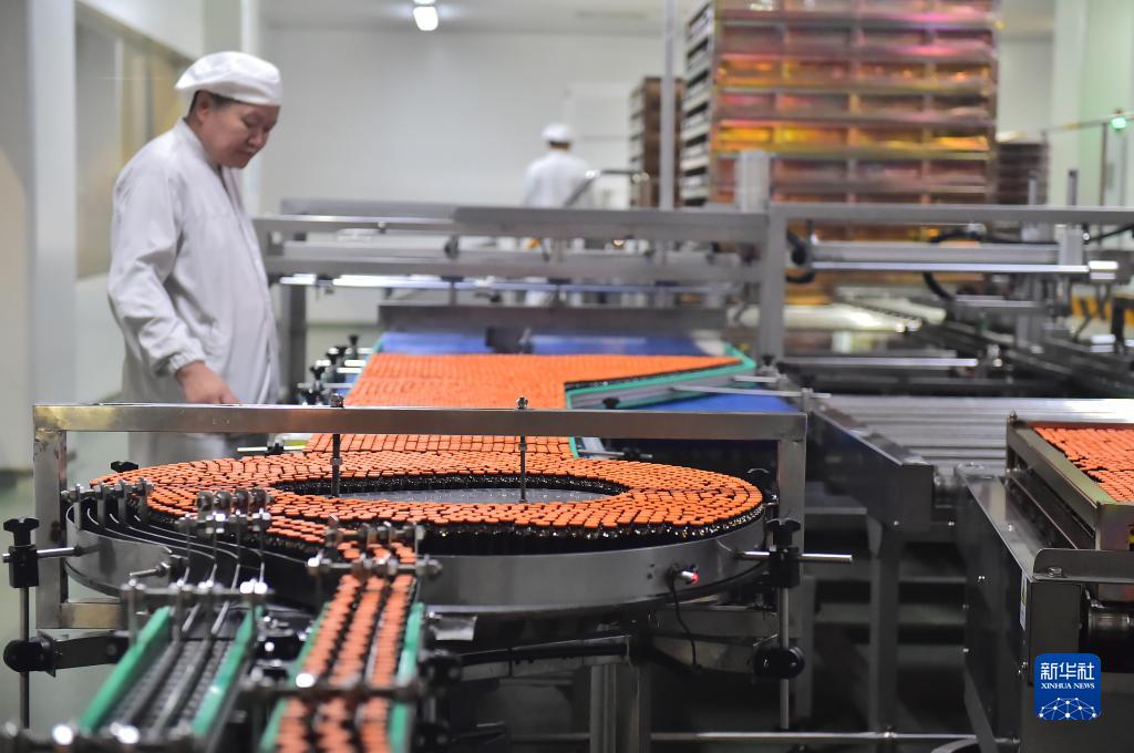 10月27日,工人在山東省聊城市東阿縣東阿阿膠股份有限公司阿膠世界體驗工廠阿膠漿生産線上值守。