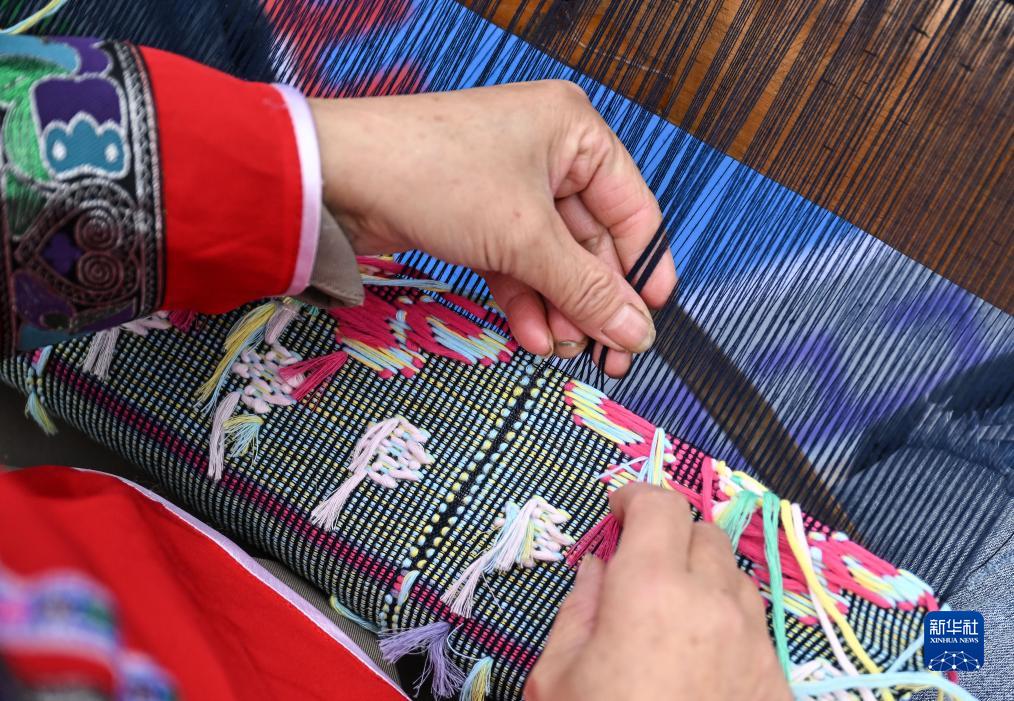 “西蘭卡普”是一種土家族織錦,其技藝歷史悠久,以麻、棉紗為經,以多色彩的粗絲、毛絨線為緯編織製作。近年來,湖北省恩施土家族苗族自治州來鳳縣加強對“西蘭卡普”的保護與傳承,圍繞“西蘭卡普”傳統技藝打造文化旅游産品,促進土家族傳統技藝傳承,助力鄉村振興。