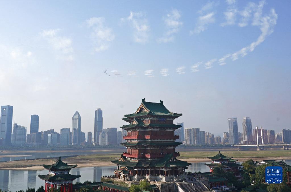 當日,2023中國航空産業大會暨南昌飛行大會組織空軍航空大學“紅鷹”飛行表演隊與歐洲環球之星特技飛行表演隊駕駛飛機在南昌市區上空進行了特技飛行表演,飛越滕王閣上空。