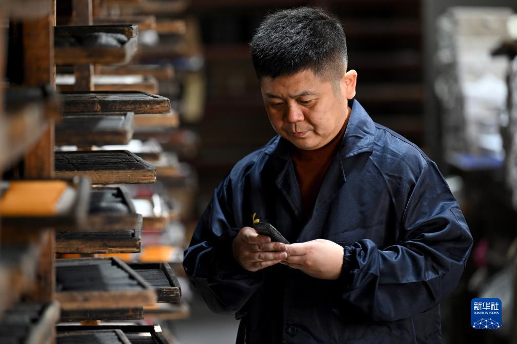 10月24日,在安徽省黃山市歙縣老胡開文墨業有限公司,周健在查看通風晾制的墨。