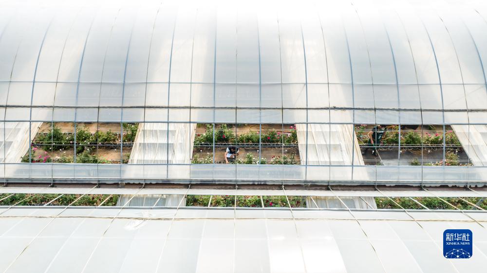 雲南省安寧市現代農業園區玫瑰種植示範園一景(無人機照片,10月20日攝)。