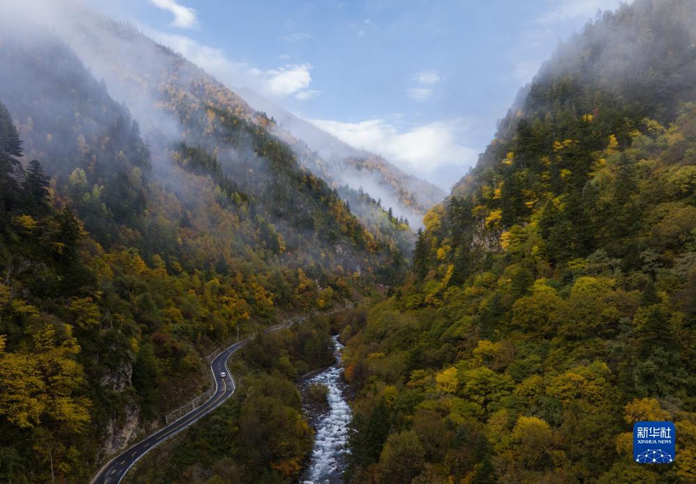 前往黨嶺村的鄉村旅游公路蜿蜒在高山峽谷中(10月27日攝,無人機照片)。