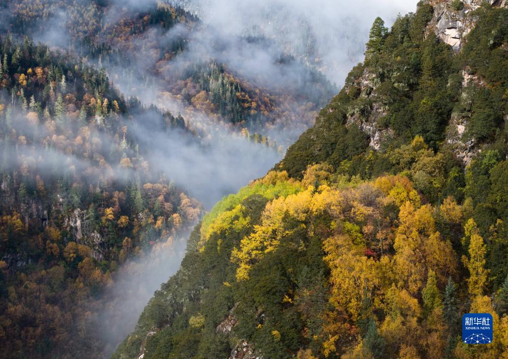 黨嶺村的彩林一角(10月27日攝,無人機照片)。