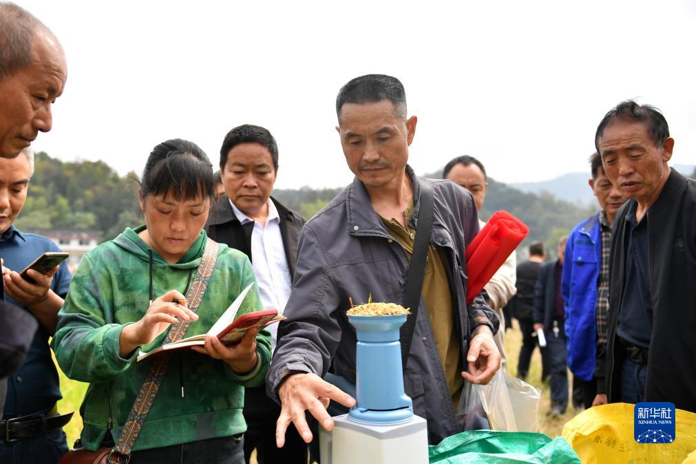 10月28日,湖南省婁底市雙峰縣“稻再油”示範片組織再生稻(再生季)現場評議與測産。“稻再油”即種植一季水稻、一季再生稻、一季冬季油菜。“稻再油”模式進一步提高了土地利用率,實現“一田三收”,在光溫資源“兩季不足、一季有餘”的地區有助於促進糧油增産,拓寬增收渠道。