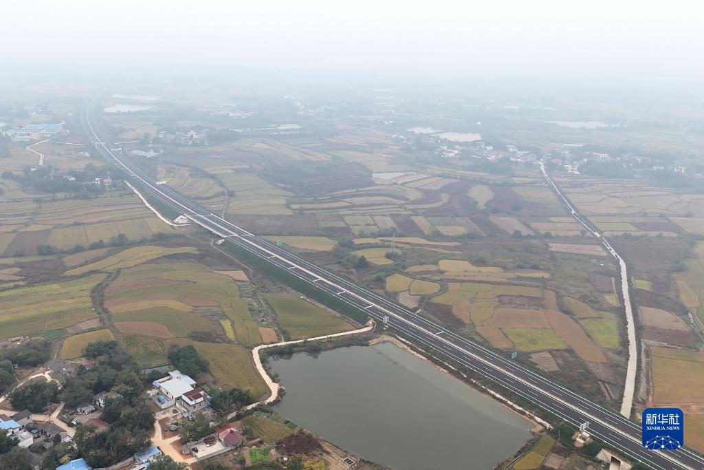 這是10月28日拍攝的通車後的無為至岳西高速公路(無人機照片)。