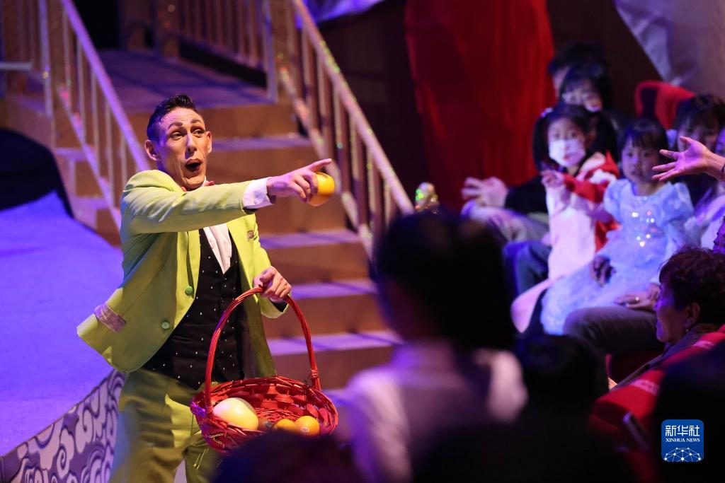 10月28日,演員在河北省滄州市吳橋縣吳橋雜技大世界景區江湖大劇院與觀眾互動。