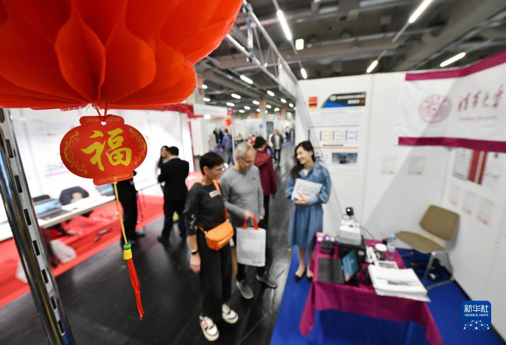 10月28日,參觀者在德國紐倫堡國際發明展清華大學展區參觀。
