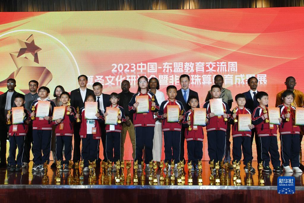 當日,由中國外文局文化傳播中心、華語教學出版社、中華詩詞發展基金會共同主辦的2023中國—東盟教育交流周算聖文化研討會暨非遺珠算教育成果展在山東省臨沂市舉行。中外教育領域嘉賓共聚一堂,360名來自全國各地的珠心算小選手現場進行了珠心算成果展演。
