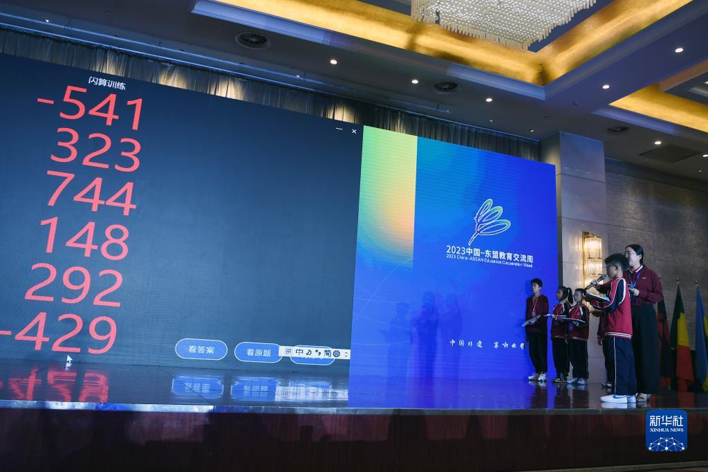 10月29日,小選手在活動現場進行珠心算“閃算”表演。