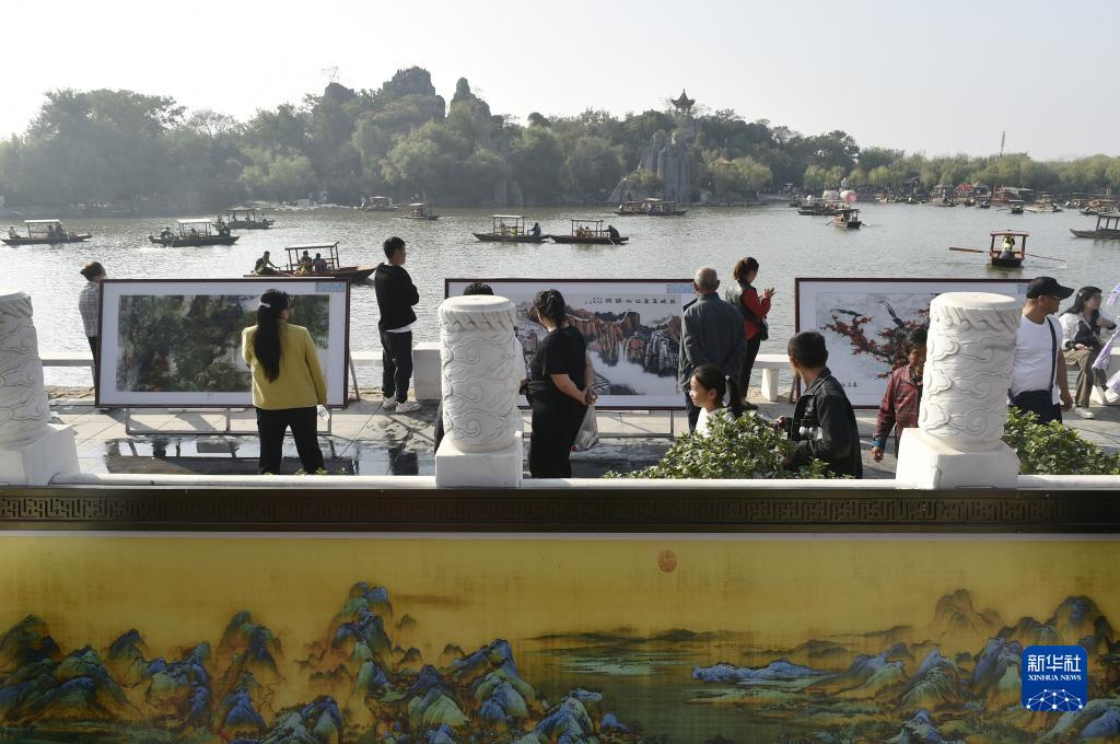 10月29日,游人在開封市中國翰園碑林景區游園。