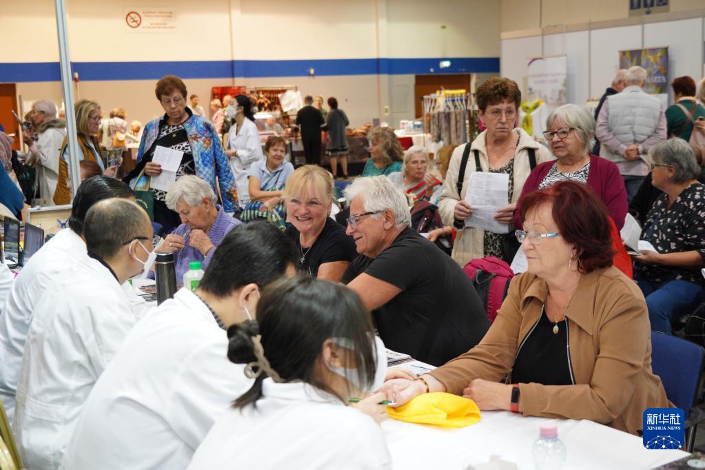 這是10月28日在匈牙利布達佩斯拍攝的 “2023年世界中醫藥日中東歐大型義診”活動現場。