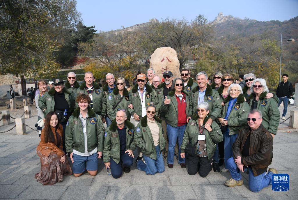 10月29日,飛虎隊老兵莫耶一行人在北京八達嶺長城合影留念。