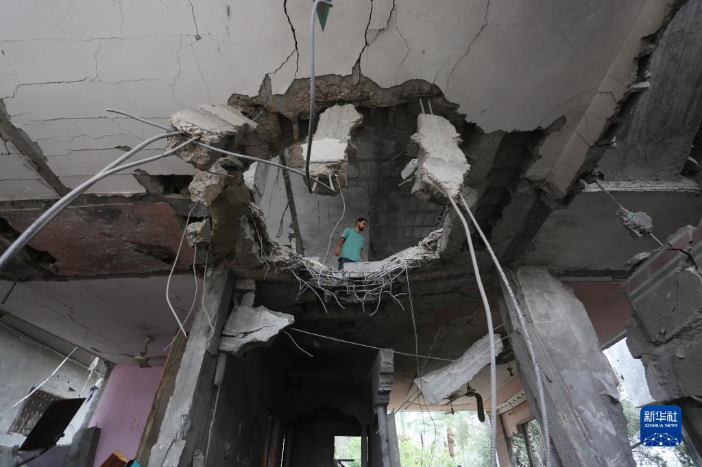 10月29日,在加沙地帶南部城市拉法,一名男子查看被以軍空襲損毀的建築。
