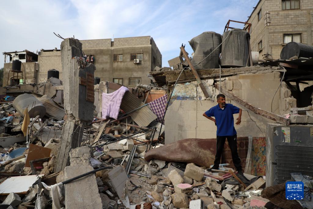 10月29日,在加沙地帶南部城市汗尤尼斯,一名男子站在遭以色列襲擊損毀的建築中。