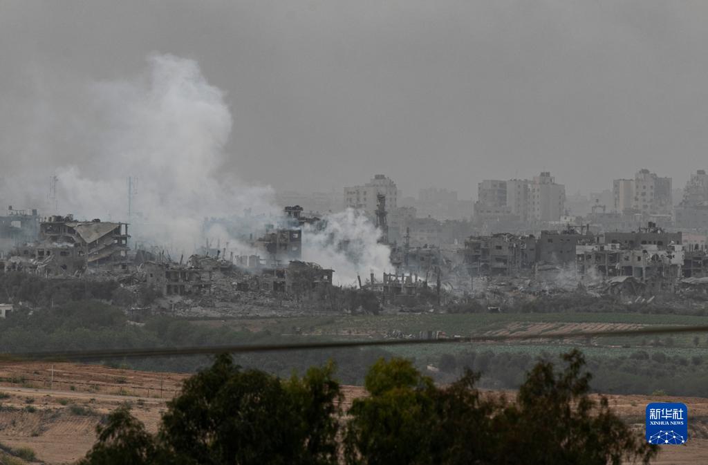 這張10月29日在加沙邊境以色列一側拍攝的照片顯示,加沙地帶北部區域被以軍襲擊後升起濃煙。