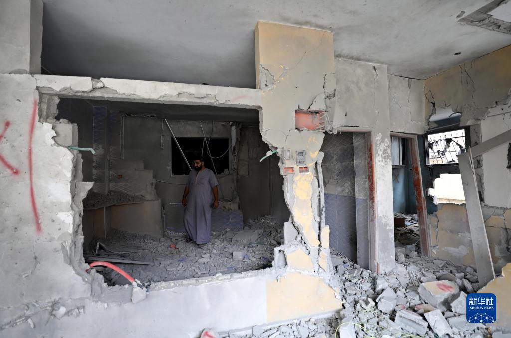 10月29日,在約旦河西岸城市納布盧斯附近,一名男子查看遭以色列襲擊損毀的建築。