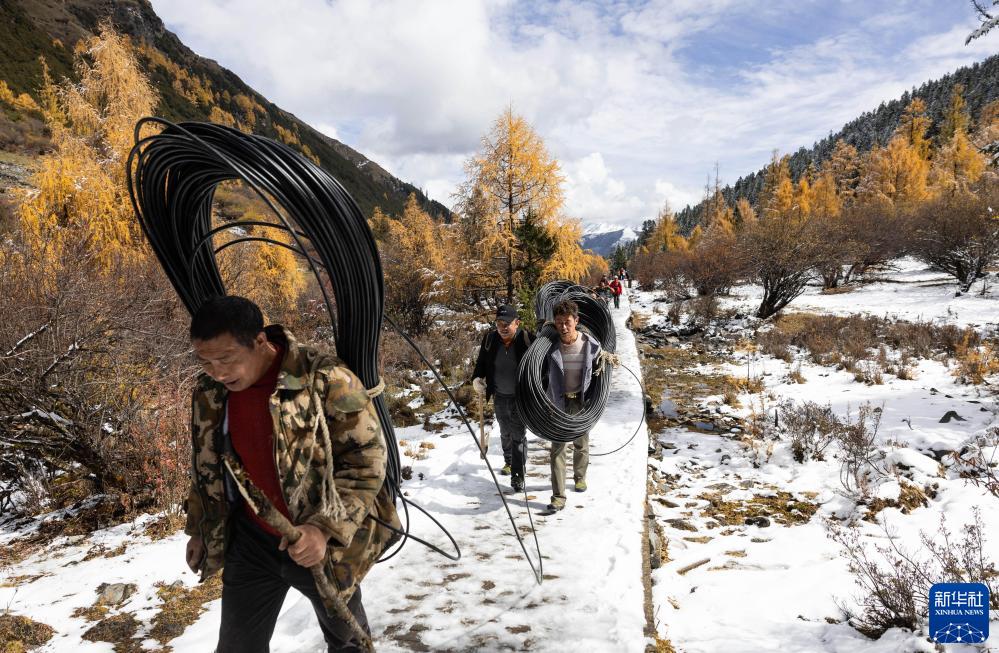 近日,中國移動通信集團四川有限公司阿壩分公司的工作人員在位於小金縣的瑪嘉溝景區建設5G基站、鋪設8公里通信光纜,以保障瑪嘉溝景區通信信號。