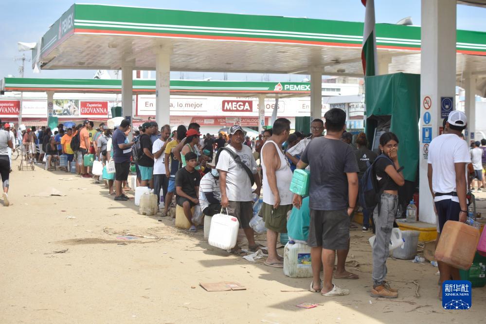 10月28日,在墨西哥格雷羅州阿卡普爾科,人們在一處加油站外排隊。