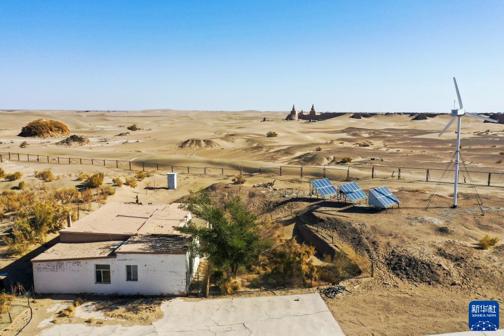 在黑城遺址附近,還保留着蘇和與德力格2004年扎根沙漠時建的三間平房,如今這裡已是一片綠蔭。“沙漠愚公”的家人們接過蘇和老人的擔子,在人跡罕至的沙漠深處譜寫生命與綠色的讚歌。