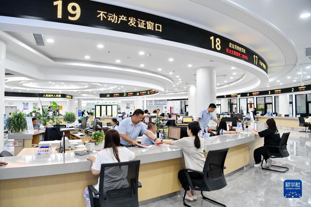 2023年7月22日,市民在河北省灤州市政務服務中心內辦理業務。近年來,河北省灤州市政務服務中心持續優化“一站式”服務,以“方便快捷、公平普惠、優質高效”為目標,實現行政審批、公共服務全面融合,提升政務服務便利化、數字化水平,推出網上辦、掌上辦、就近辦、幫辦代辦、全天候“不打烊”制度等多項便民服務措施,讓群眾辦理業務更便捷高效,助力營商環境優化。