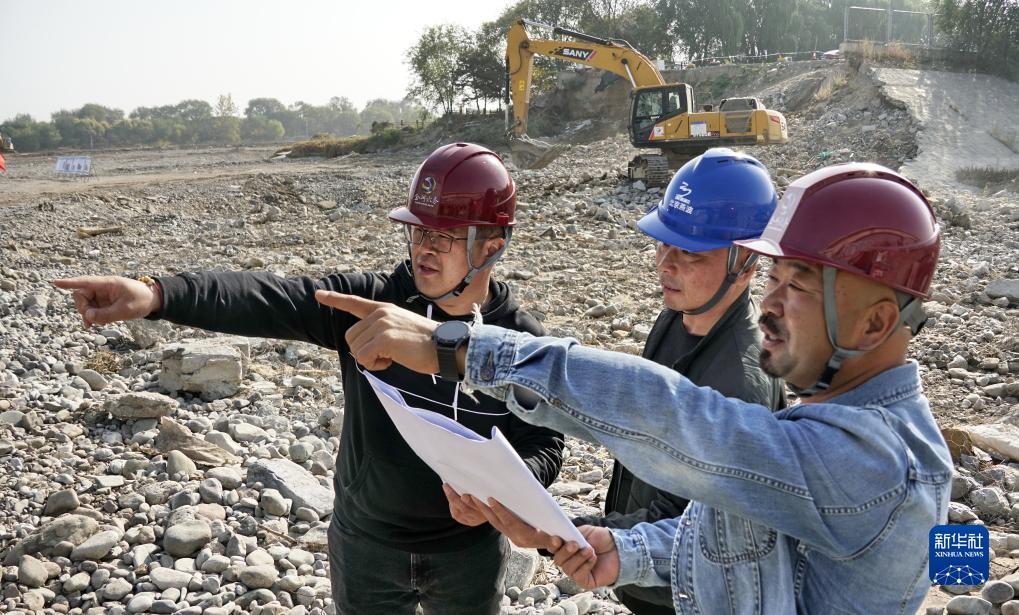 10月30日,工程技術人員在永定河河道內指揮施工。