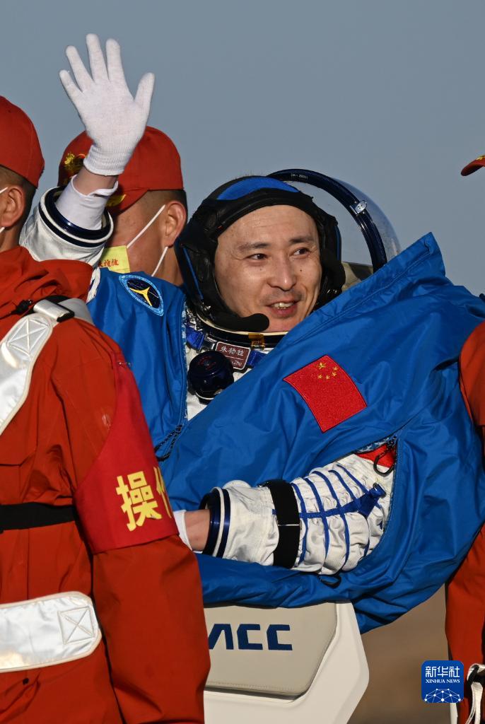10月31日,神舟十六號載人飛船返回艙在東風着陸場成功着陸。這是航天員朱楊柱安全順利出艙。