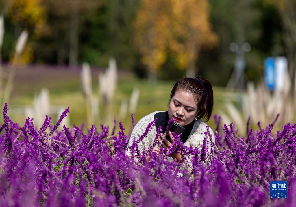 10月31日,游客在貴州省畢節市&&杜鵑管理區彝山花谷景區賞花拍照。