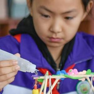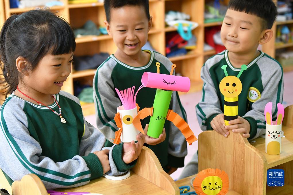 10月31日,山東省煙&市福山區未來之星幼兒園的小朋友利用廢舊物品製作手工藝品。