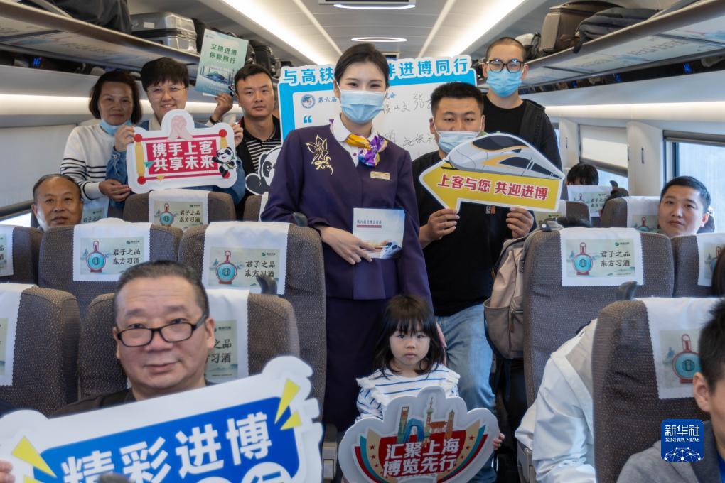 第六屆中國國際進口博覽會開幕在即,鐵路上海客運段開展“與高鐵相約 伴進博同行”主題活動,向旅客介紹進博會亮點,邀請旅客一起為進博會送上祝福。