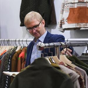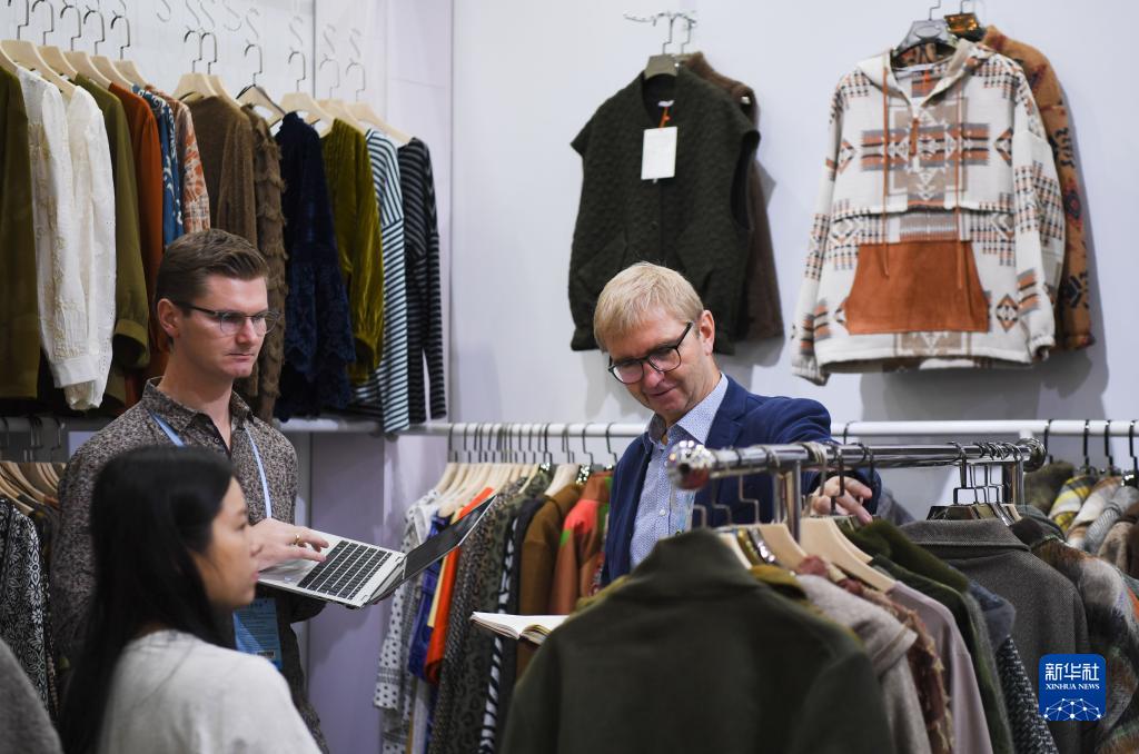 10月31日,外國採購商在服裝展區洽談。