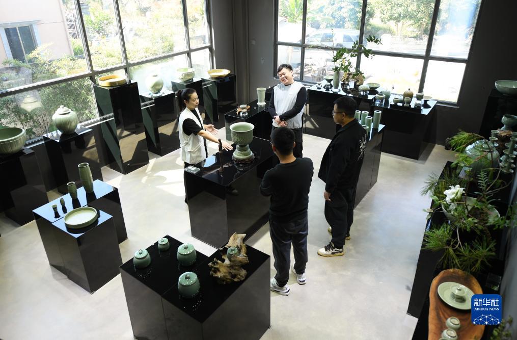 “95後”陶瓷夫妻檔季雙俊和季資美是高中和大學時的同學,因為共同的興趣走到一起。從景德鎮陶瓷工藝美院畢業後回到故鄉龍泉,夫妻二人在甌江旁的爐田村駐紮下來,成立了“梅夫人”工作室,潛心鑽研北宋風格的青瓷器。兩人從古瓷中尋找靈感,力圖重現北宋龍泉窯的胎釉特點,並借鑒青銅器、金銀器、古代服裝上的紋樣,在瓷上傾注對傳統文化的熱愛。