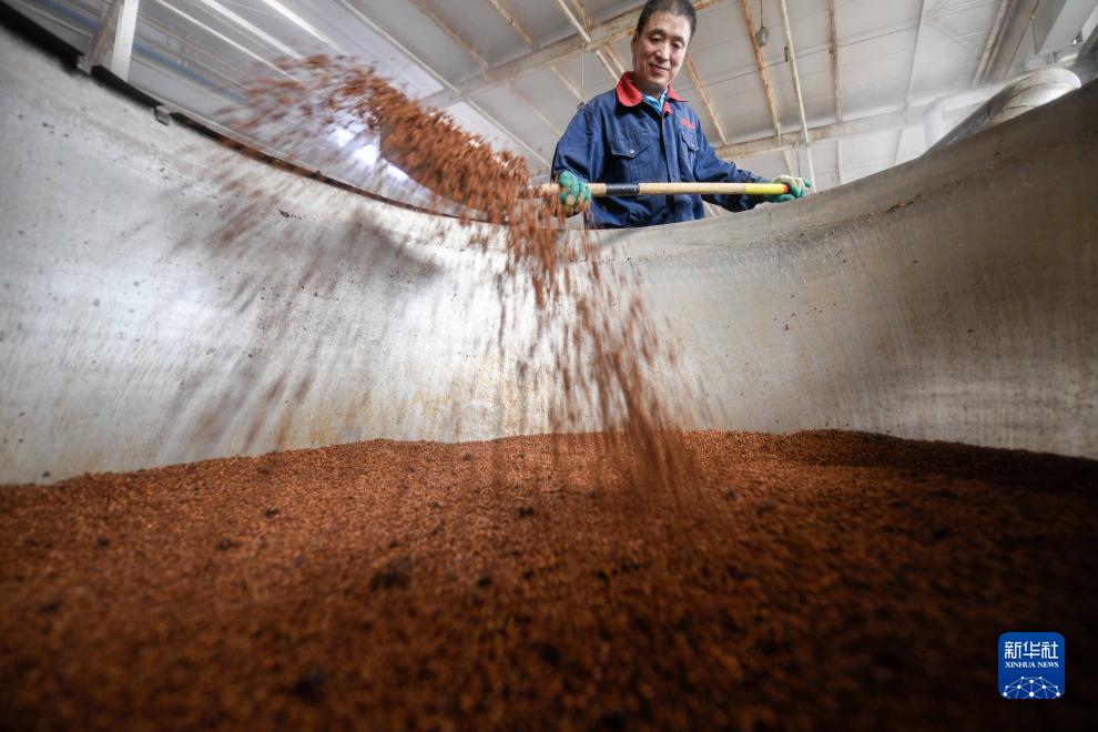 琢酒釀酒技藝是河北省承德市非物質文化遺産。深秋時節,承德市寬城滿族自治縣的白酒企業按照非遺技藝要求,以高粱為主要原料,經過潤糧、蒸糧、攤晾拌曲、高溫堆積、入窖發酵、蒸餾等傳統工藝釀造醬香型白酒,廠區內瀰漫着濃郁的酒香。